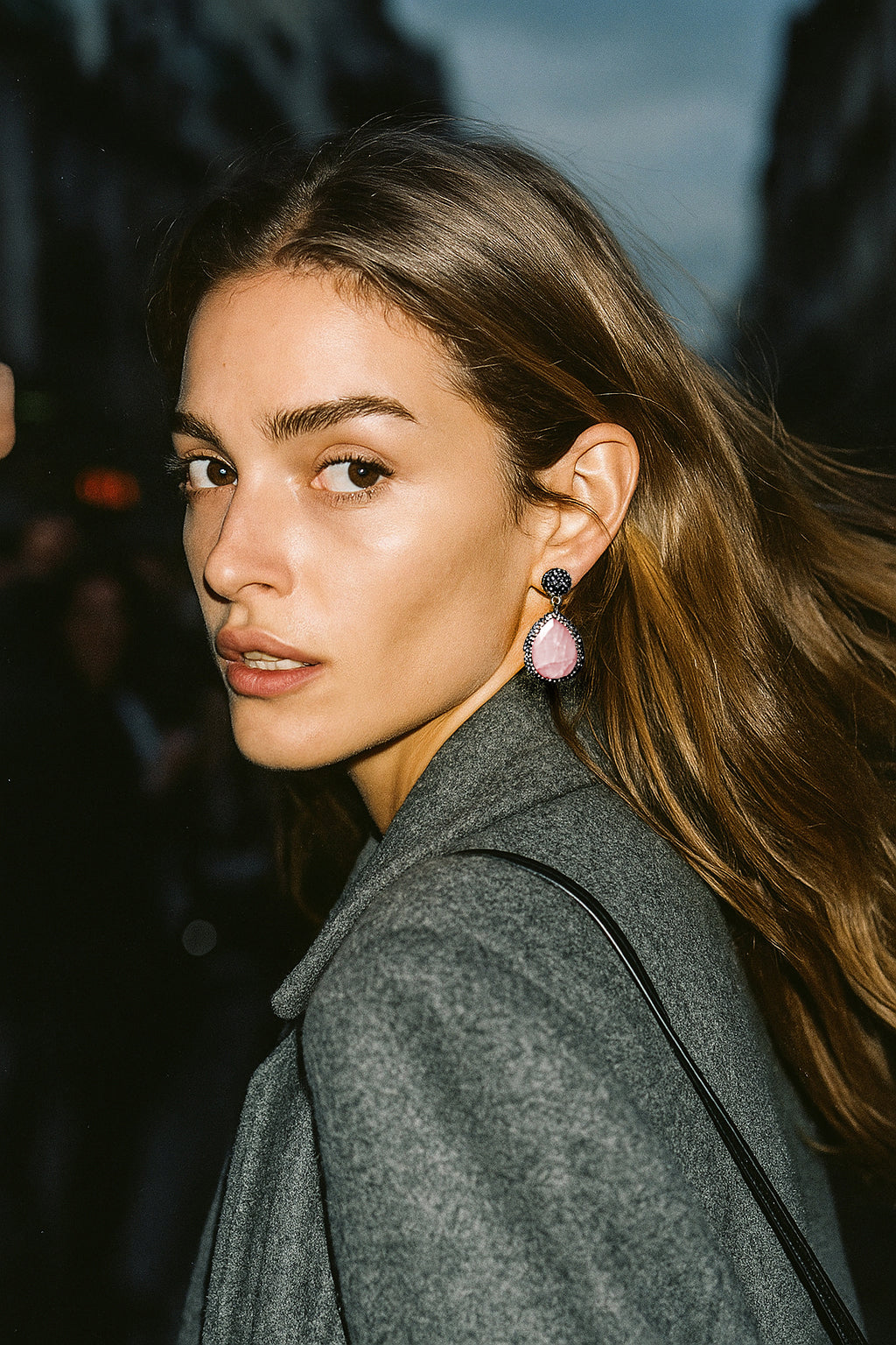 A radiating exchange between light, material, and form; designed for the ultimate glow. Handcrafted with natural rose quartz and Swarovski crystals, these luxury earrings capture every reflection with luminous precision. Each stone is carefully selected for its magnetic energy and soft blush tone, enhancing the skin’s natural brilliance.